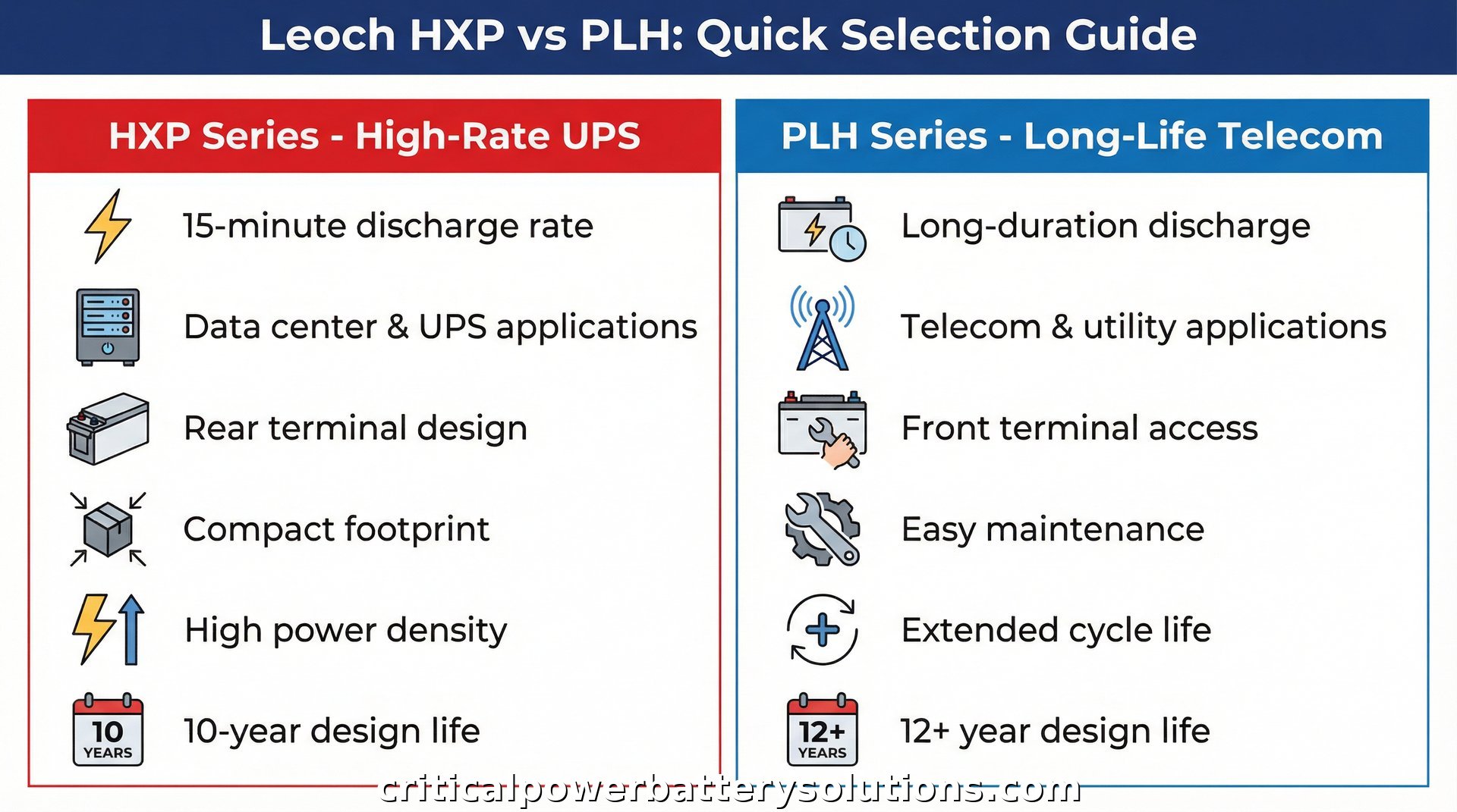• What You’ll Learn: The specific differences between Leoch’s high-rate UPS (XP & HXP) and telecom pure lead front terminal battery (PLH) series, including performance characteristics, application fit, and compliance details.