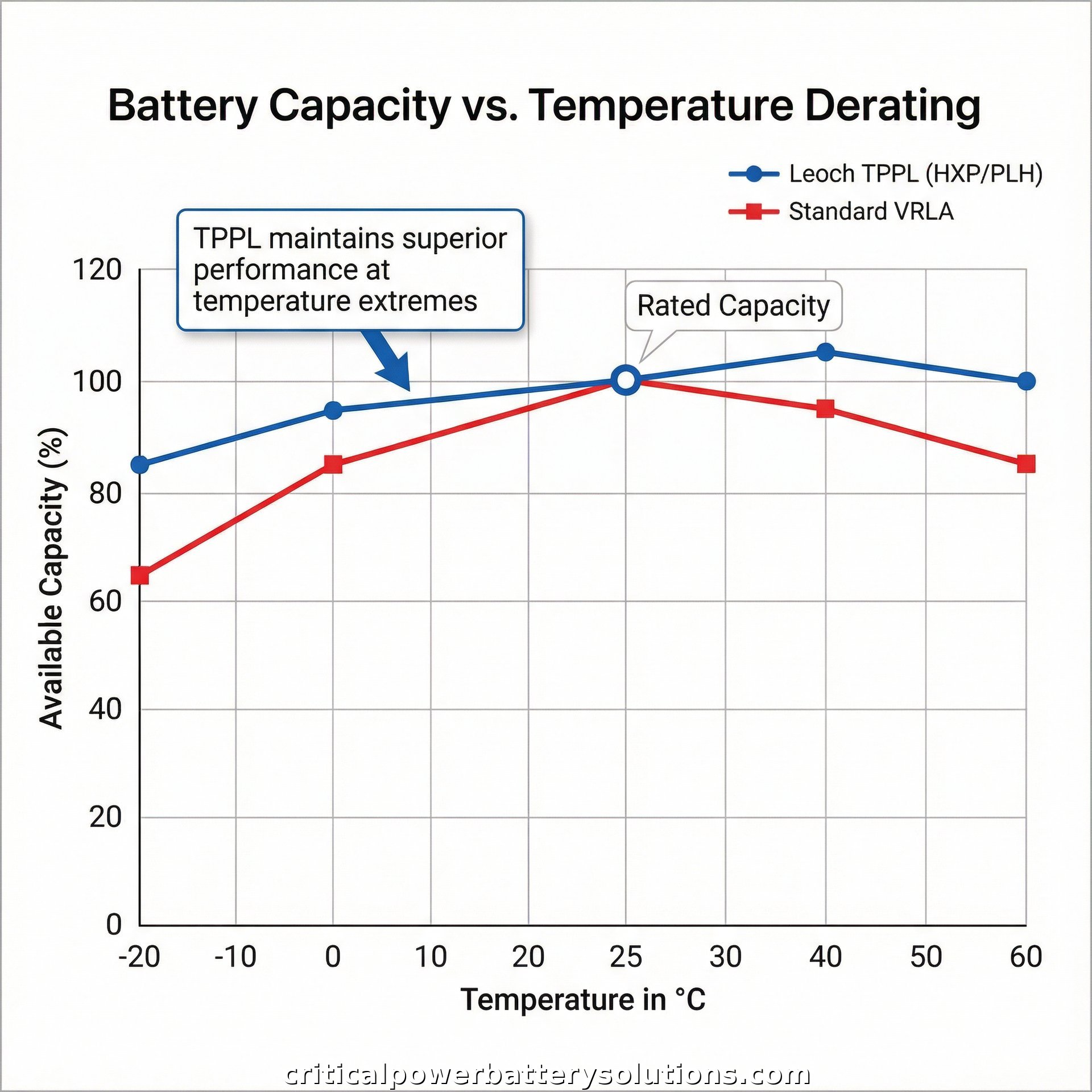 • Wider Temperature Range: TPPL chemistry is more stable in extreme temperatures, making it ideal for challenging environments like remote telecom shelters. The PLH series operates from -40°F to 149°F (-40°C to 65°C), a range that covers everything from an Arizona desert cell tower to an Alaska pipeline station.