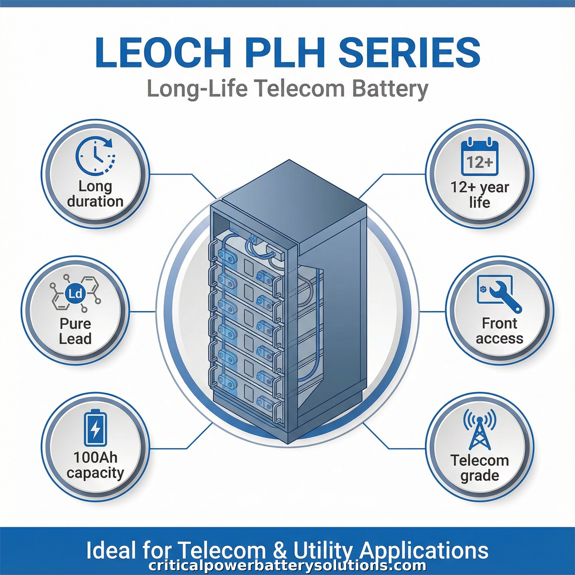 Leoch PLH Battery Series: Long-Life Telecom Pure Lead Front Terminal Battery