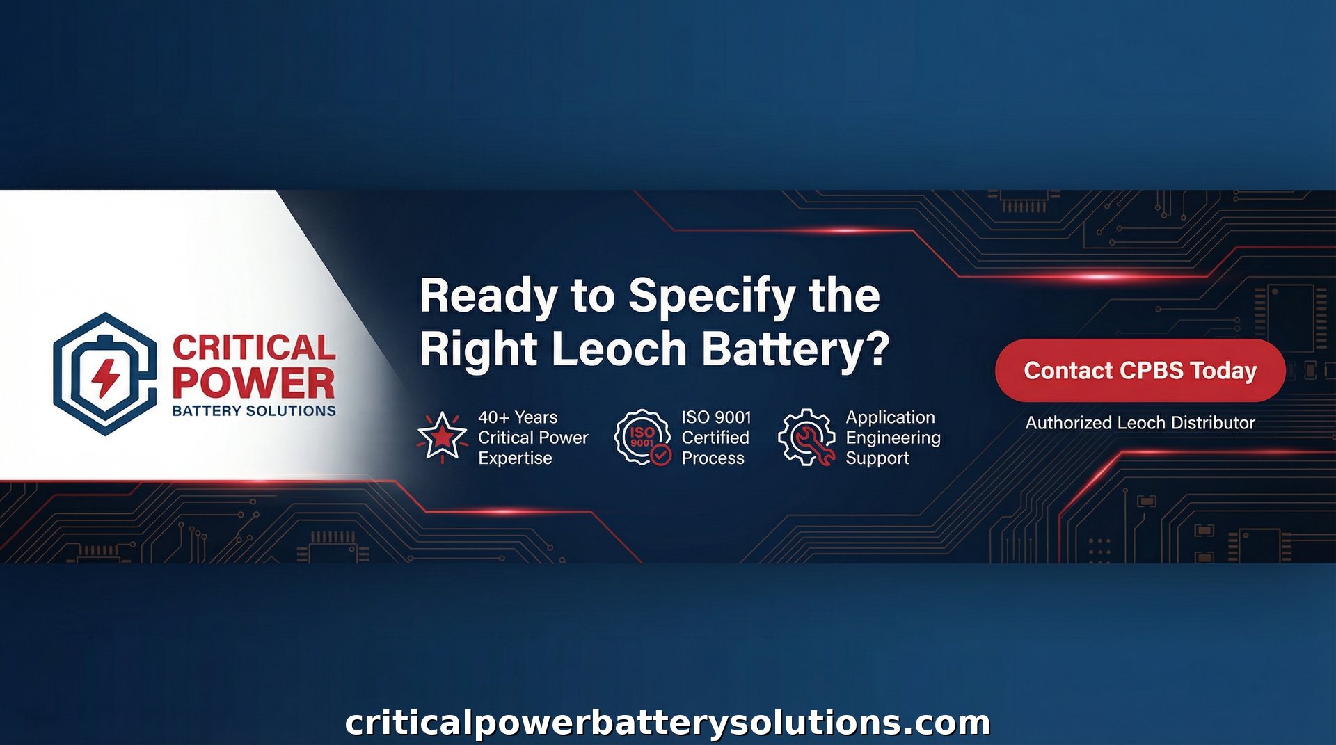 • Why CPBS: As an Authorized Leoch Distributor and a division of ATS, we provide more than just products. We offer 30+ years of critical power expertise, application engineering, and an ISO 9001-certified process to ensure you get the right solution, every time. Due to high demand and potential supply chain constraints, we recommend planning your procurement cycle in advance to avoid extended lead times.